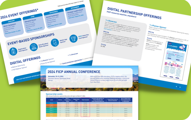With event-based sponsorships for four in-person events, digital sponsorship offerings and opportunities to engage meetings professional on a year round basis, FICP is the place for hospitality partners looking to expand their business in support of the financial and insurance industry.
